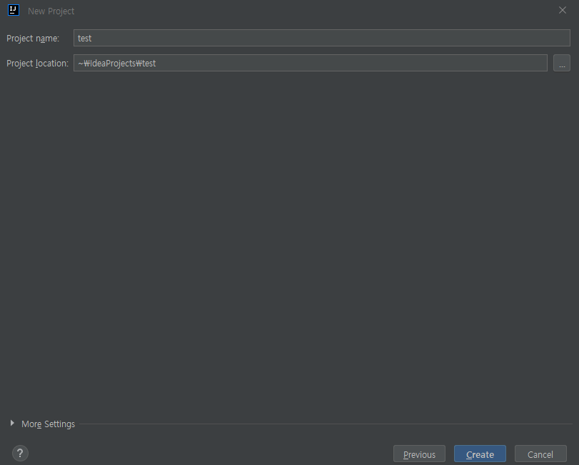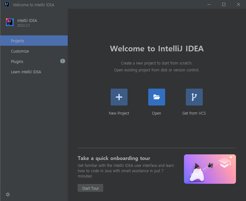 다시시작하면 IntelliJ 메인화면을 다시 볼 수 있습니다.