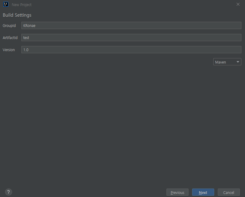 GroupId 에는 아무거나 적으세요. 저는 제 닉네임을 적겠습니다.