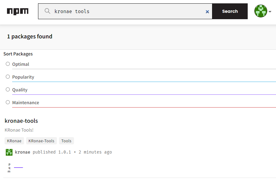 프로필을 봐도 방금 만든 kronae-tools 패키지가 잘 보이고,