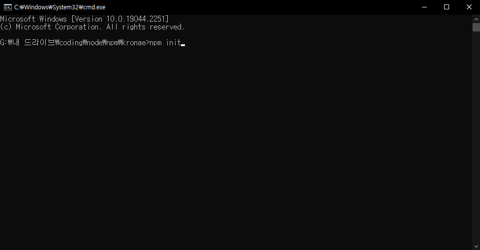 그 다음 열리는 창에 npm init 이라고 적어줍니다.