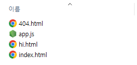 그 다음 index.html, hi.html 그리고 404.html 파일을 만듭니다.