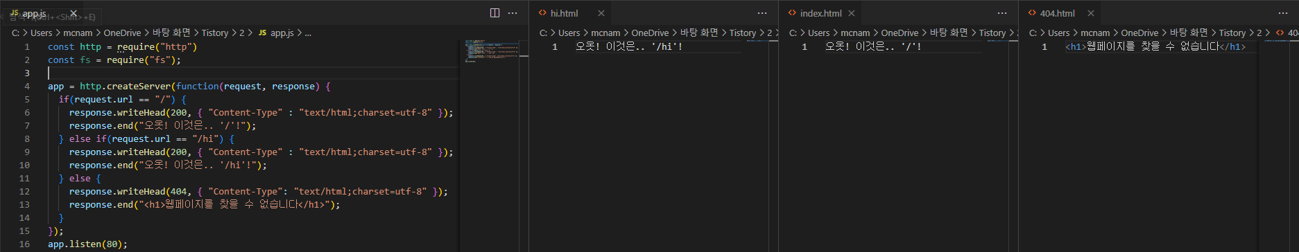 1편: https://kr-onae.tistory.com/entry/Nodejs-웹-서버-만들기-1편